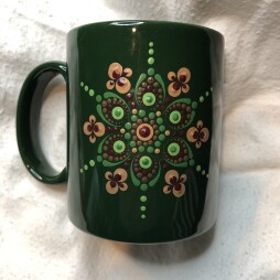 Join us for a fun day of painting a beautiful dot mandala on a 12 oz. ceramic black mug. This is the perfect time of year for it. Cozy up by the fire with your favorite hot beverage and enjoy your amazing artwork.