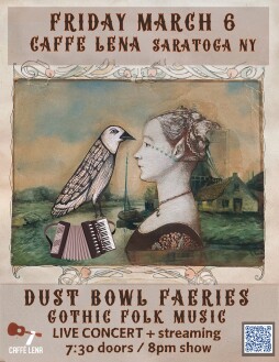 Dust Bowl Faeries bring a faerie-tale of dark cabaret and gothic folk music to Caffe Lena on Friday March 6th at 8pm. The live concert will also be available for streaming.
