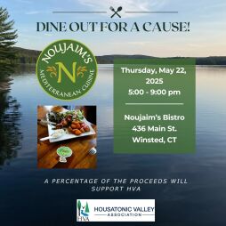 Join the Housatonic Valley Association for a Dine Out for a Cause fundraiser, hosted by Noujaim’s Bistro in Winsted, CT! A portion of the proceeds from Chef George Noujaim’s famous Lebanese dishes will support HVA's conservation work in the Housatonic Valley and beyond.