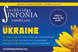 Stockbridge Sinfonia, Berkshires’ longest running community orchestra, presents a Tribute to Ukraine, in concert on Sunday, August 11, 6 pm at Saint James Place in Great Barrington, with compositions by Ukrainian composers Prokofieff, Gliere and Skoryk, and the Ukrainian National Anthem, sung in Ukraine by members of three Berkshire choruses: Stockbridge Festival, Berkshire Concert, and Northern Berkshires. The concert will begin with the chorus and audience joining in song with America the Beautiful. The first half of the concert will conclude with a piece by Pittsfield High School junior Davis Albayeros, El Último Baile, for strings. The second half is a performance of Beethoven's Seventh Symphony.