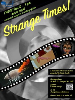 On September 8, at 7 pm. Kaats Cradle Theater at the Carriage House in Stamford presents “Strange Times,” a whirlwind trip through 120 years of “magic and madness” in cinema, produced by Patricia Wadsley and James Nevin. Among the offerings in this offbeat film compilation: gems by groundbreaking French magician and filmmaker George Méliès, animator Max Fleischer, sci fi from the 50s and 60s, and comedy madness from a film maker known only as Karl Off. Strange Times has been called “laugh out loud funny” and a “10 out of 10” by viewers who’ve seen it at previous showings at the Pine Hill Arms and Phoenicia Playhouse. It’s on Catskill Air this Fall but come get popcorn and cotton candy and see it on the big screen at Stamford Carriage House, 76 Main Street. $10 at strangetimes.eventbrite.com $5 for children under 12.