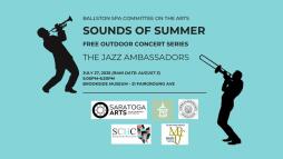 The Village of Ballston Spa Committee on the Arts is pleased to present the first concert of the "Sounds of Summer/Sounds in Winter" series on July 27 at 5pm. (Rain date is August 3 at 5pm) This is the 5th anniversary of "Sounds of Summer" featuring Dennis Searles and the Jazz Ambassadors Jazz Band playing music from the porch of the historic Brookside Museum. Bring a chair and a picnic dinner to enjoy a wonderful evening of music. This concert is free and sponsored by grants from Saratoga Arts and the American Federation of Musicians Music Performance Trust Fund, the Village of Ballston Spa Committee on the Arts along with the Saratoga County History Center at Brookside Museum.