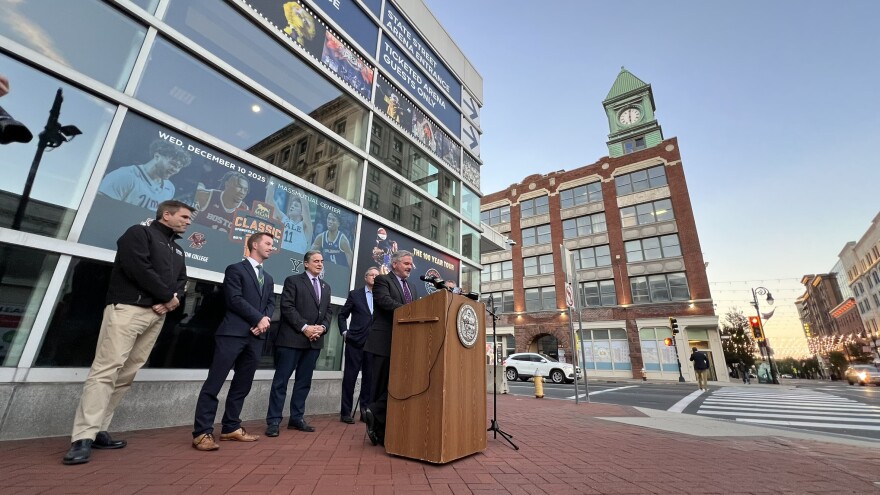 As a major redevelopment effort in downtown Springfield continues, city officials marked a milestone – one you can set your watch by. WAMC’s Pioneer Valley Bureau Chief James Paleologopoulos reports.